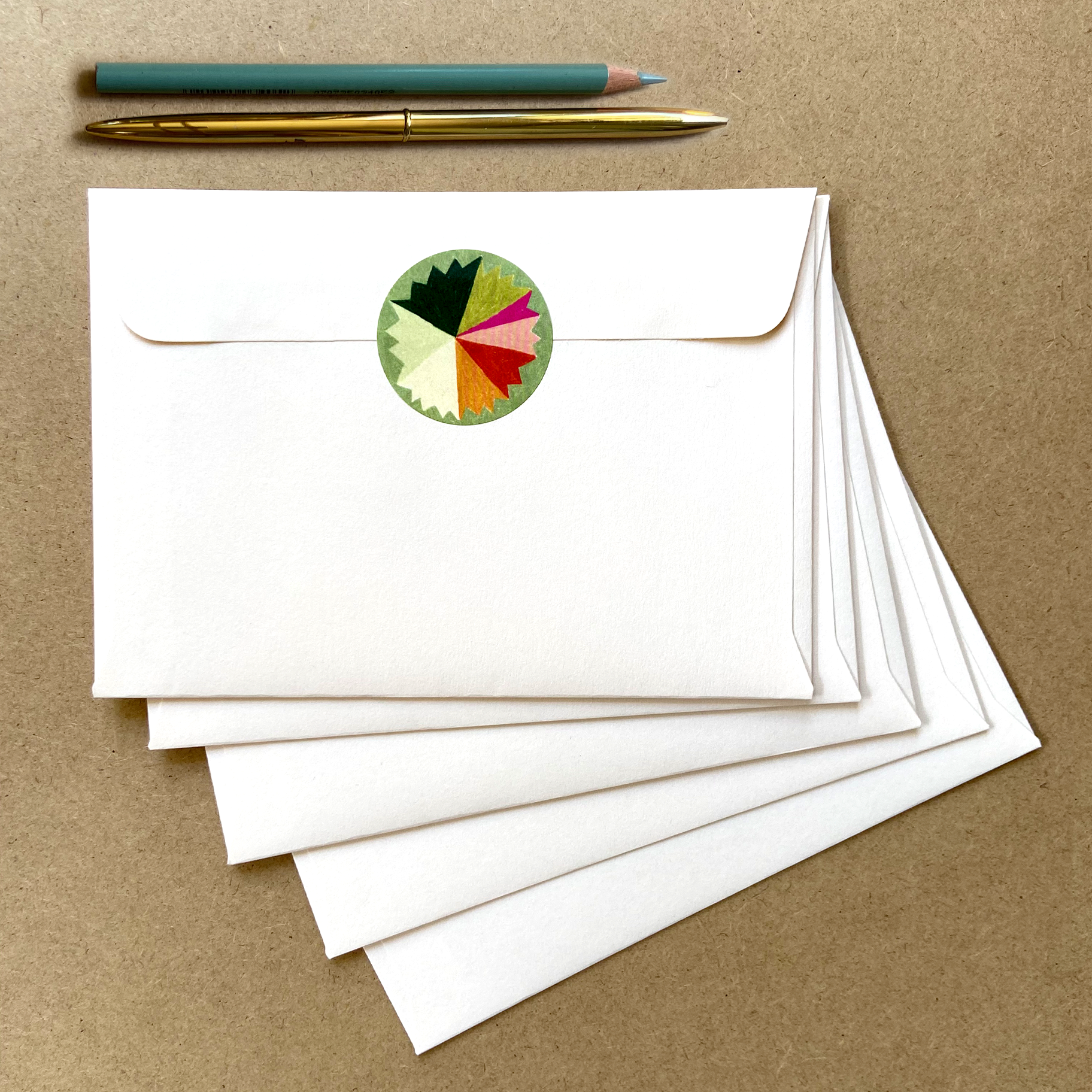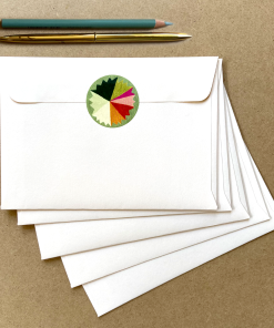 Printed locally on FSC certified paper are size A5 with Vegetable Inks, 100% Recycled Kraft Envelope.
